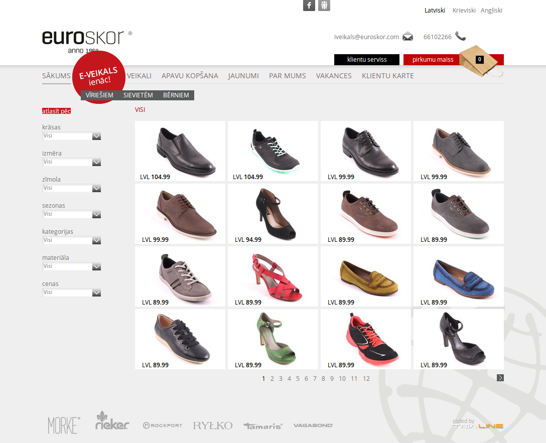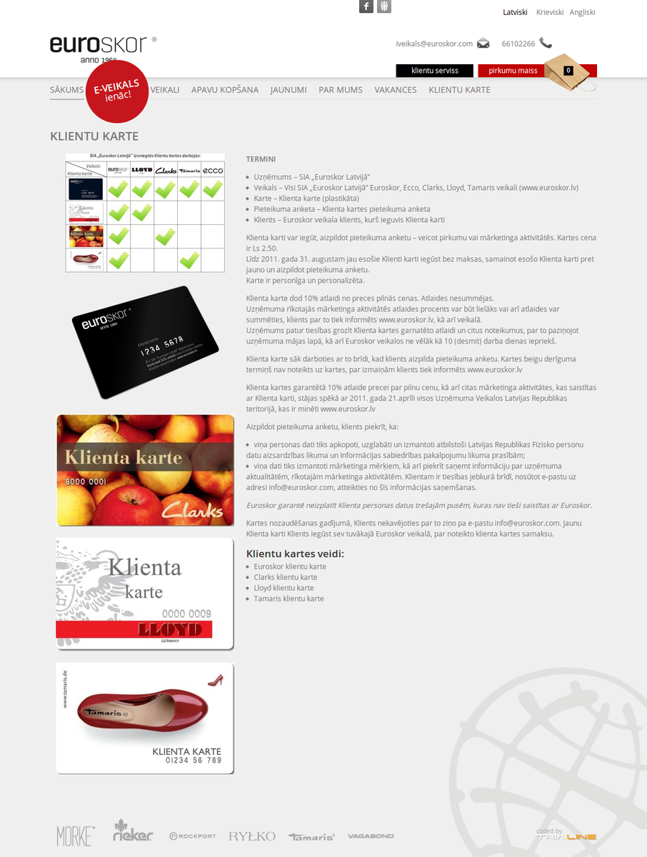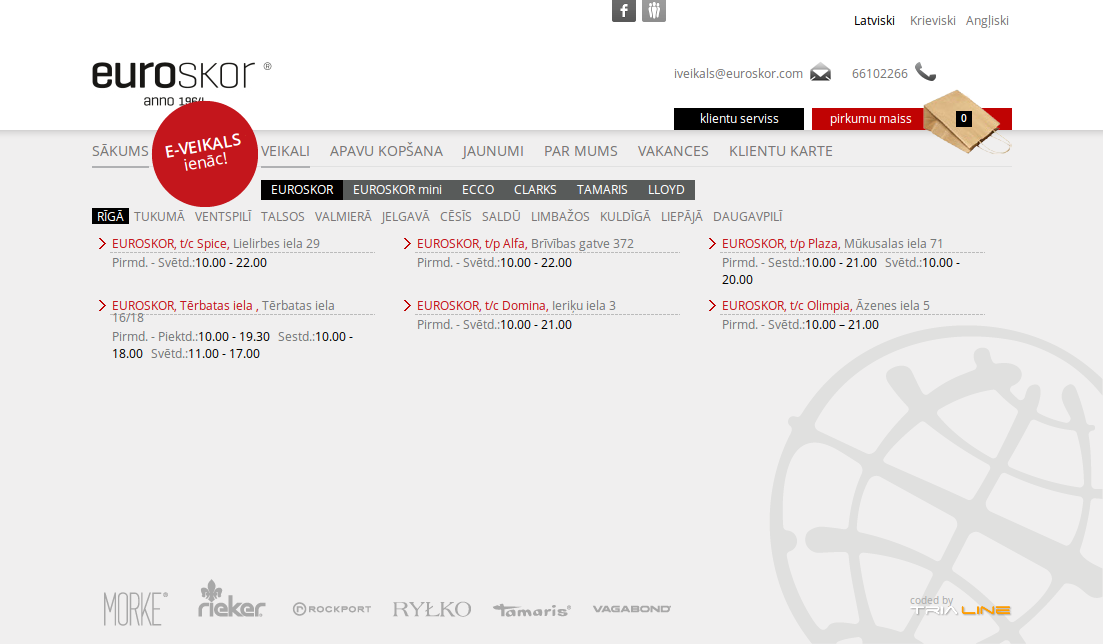 EUROSKOR apavu veikalā mājas lapa. Lapā tika integrēts interneta veikals, ar iespēju iepirkties online, izvēloties vajadzīgus produktus, piegādes veidus, jeb iespēju izņemt preci noteiktā veikalā. Projekts bija īstenots izmantojot Django (Python valodas framework)